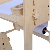 این محصول صرفاً یک میز ساده نیست؛ بلکه یک ایستگاه خلاقیت کامل است. وجود دو سطح نوشتاری (تختهسیاه و صفحه میز) و همچنین رول کاغذ بلند باعث شده کودک بتواند انواع فعالیتها مثل نقاشی، مشق، بازیهای آموزشی و کاردستی را روی آن انجام دهد. همین تنوع کاربرد است که این میز را تبدیل به یکی از محبوبترین مدلهای مونتسوری میکند.